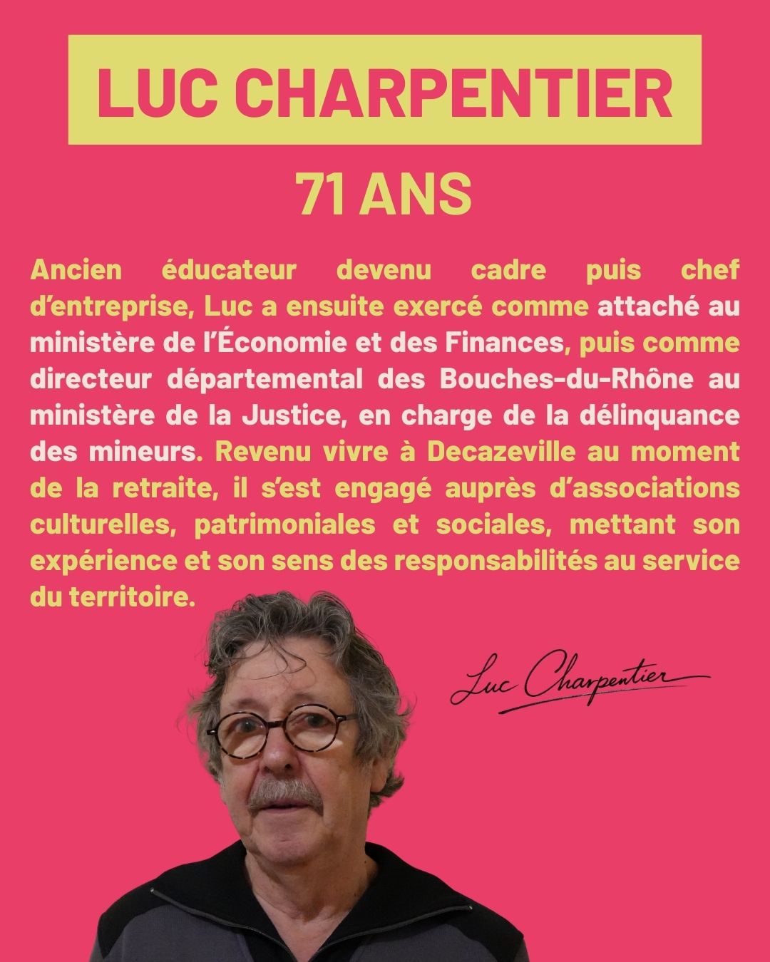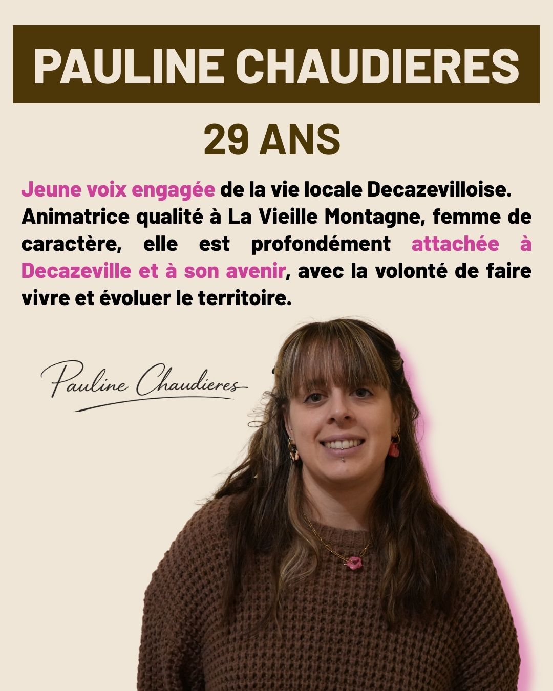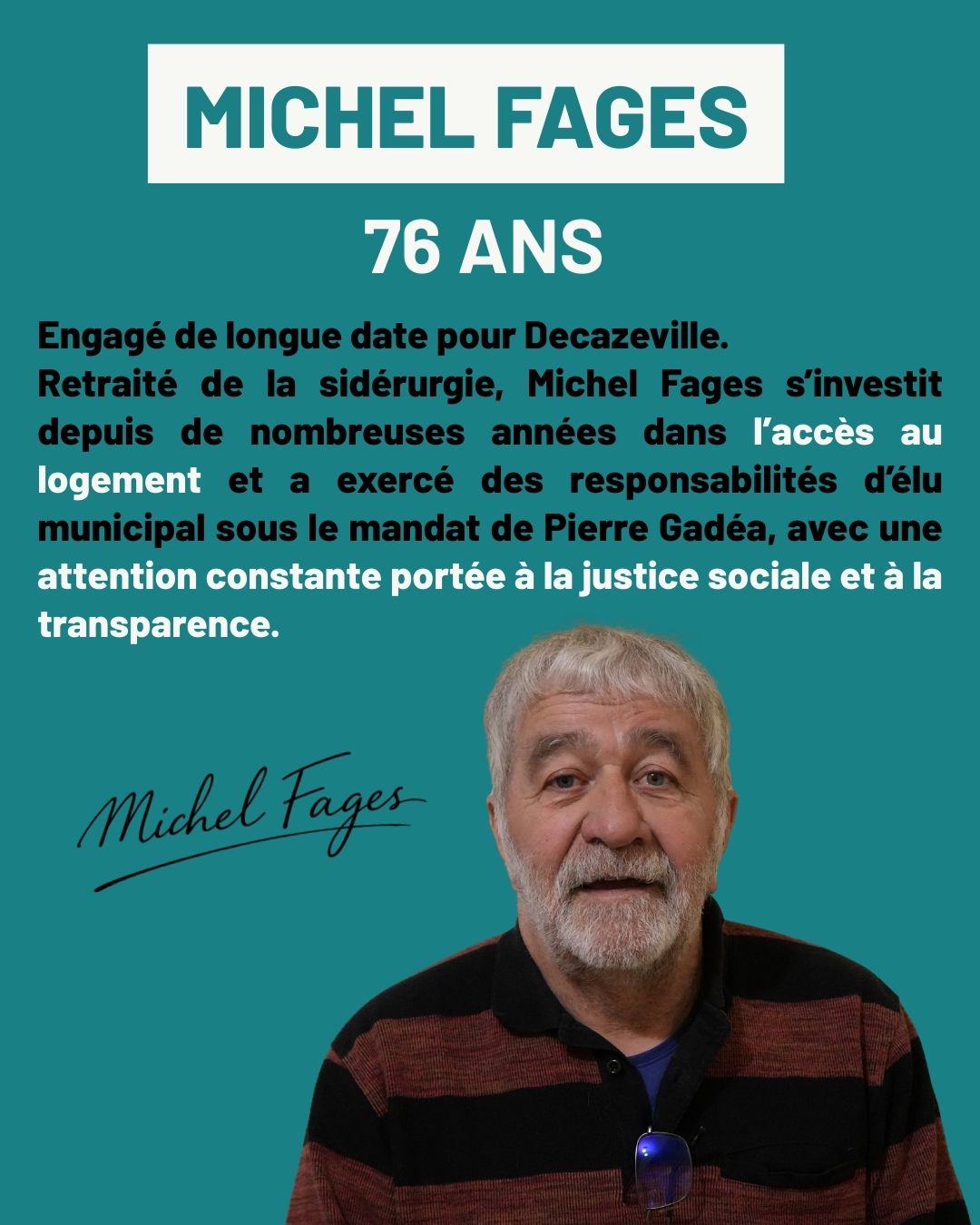 Si j’ai choisi de m’engager, c’est parce que je crois profondément que Decazeville mérite mieux que le renoncement ou l’habitude. Elle mérite un projet clair, construit avec méthode, et surtout avec celles et ceux qui y vivent.