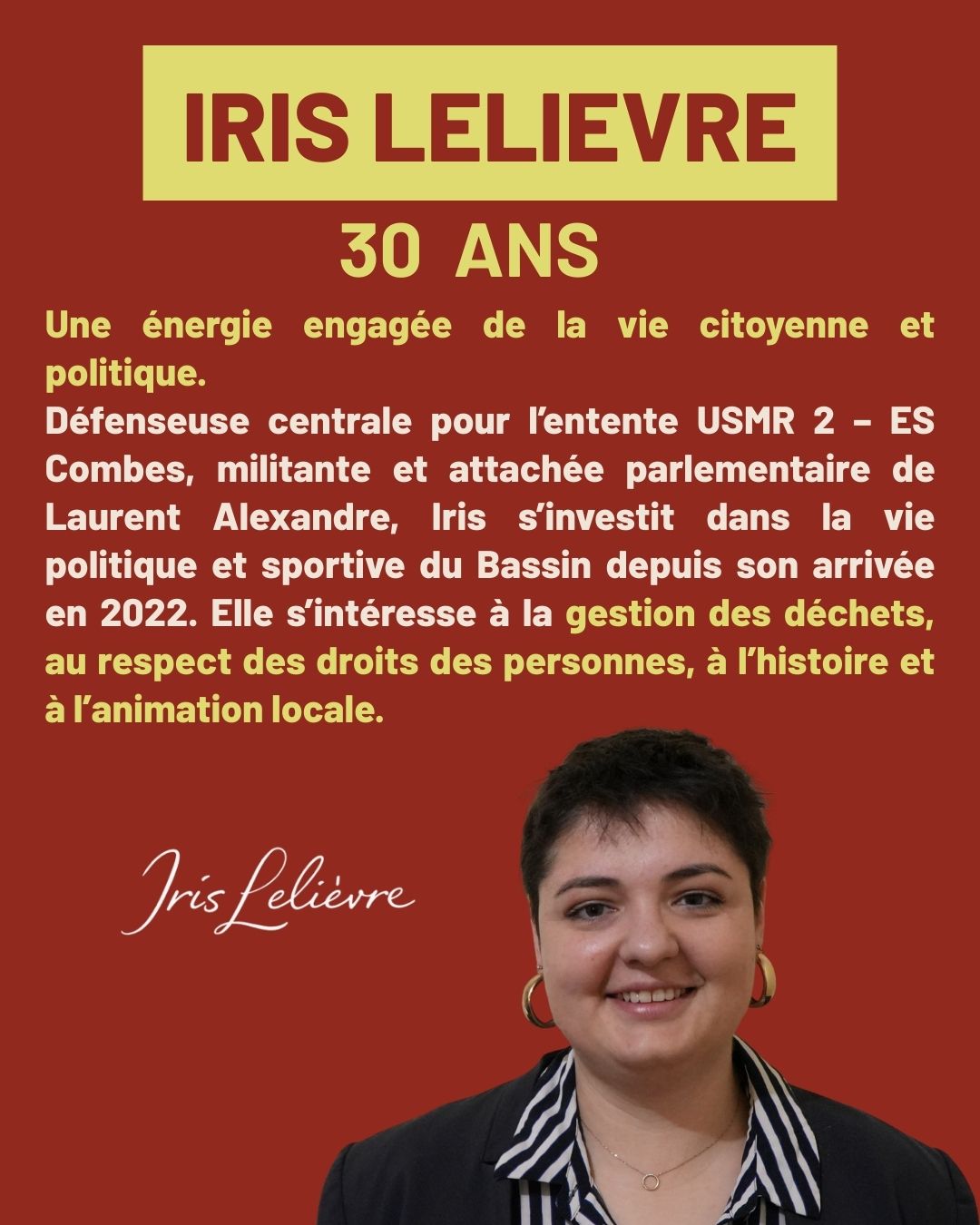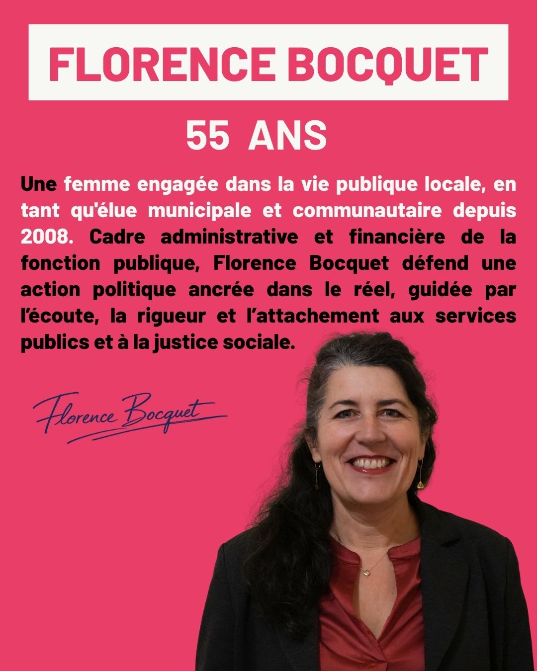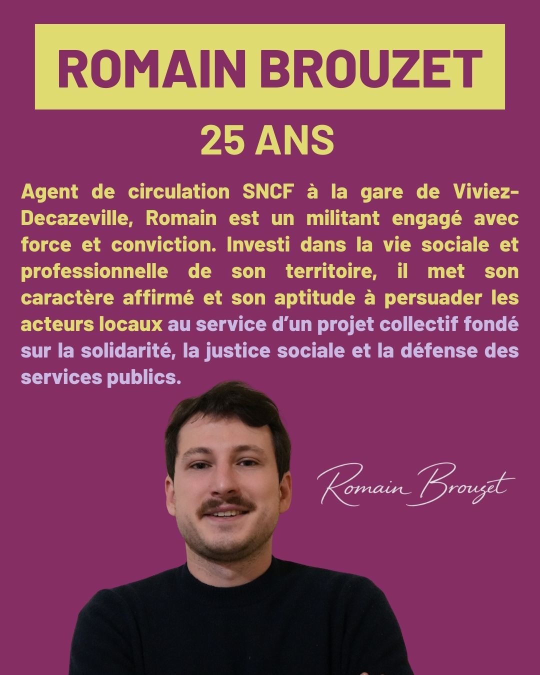 la défense des services publics, la justice sociale, l’accès à la culture et au sport pour toutes et tous. Ces valeurs guident mon engagement au quotidien et donnent du sens à mon action.