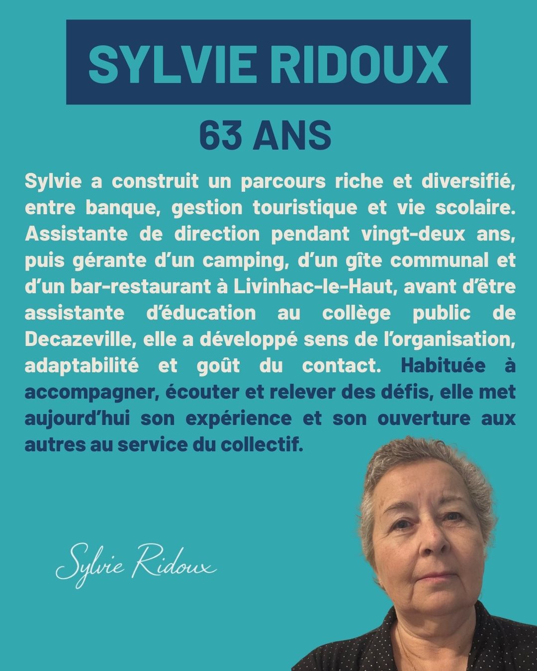 Candidate pour conduire la liste et le projet Decazeville Demain